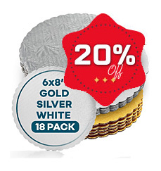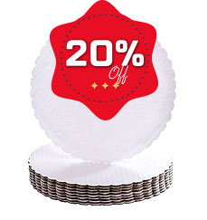 Besides classical cake boards we offer you a Scalloped Edge Cake Boards. Scalloped boards provide a superior presentation and assist in transportation of the finished product. This cake board is die cut by hydraulic cutting presser machine, under incredible pressure to give the cake board a finished edge that is uniform and smooth. Scalloped edge design, make it looks more attractive and good looking. You can find all dimensions from 8 till 14, white, silver and gold in packaging do 6 count, 12 and 25 count. The foil embossed laminated provides a grease-resistant barrier between your supported sweets and cakes.